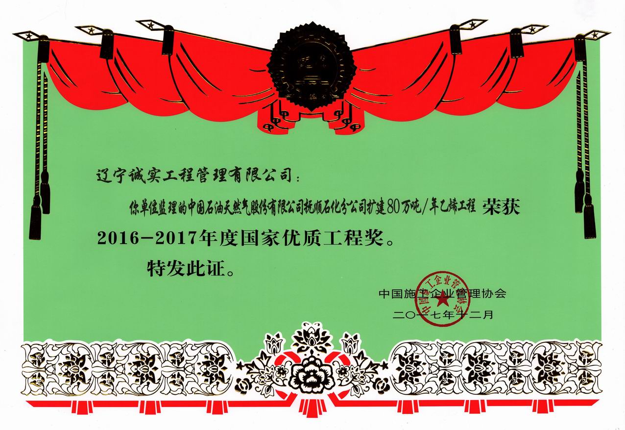2016-2017年國(guó)家優(yōu)質(zhì)工程獎(jiǎng)(撫順石化擴(kuò)建)