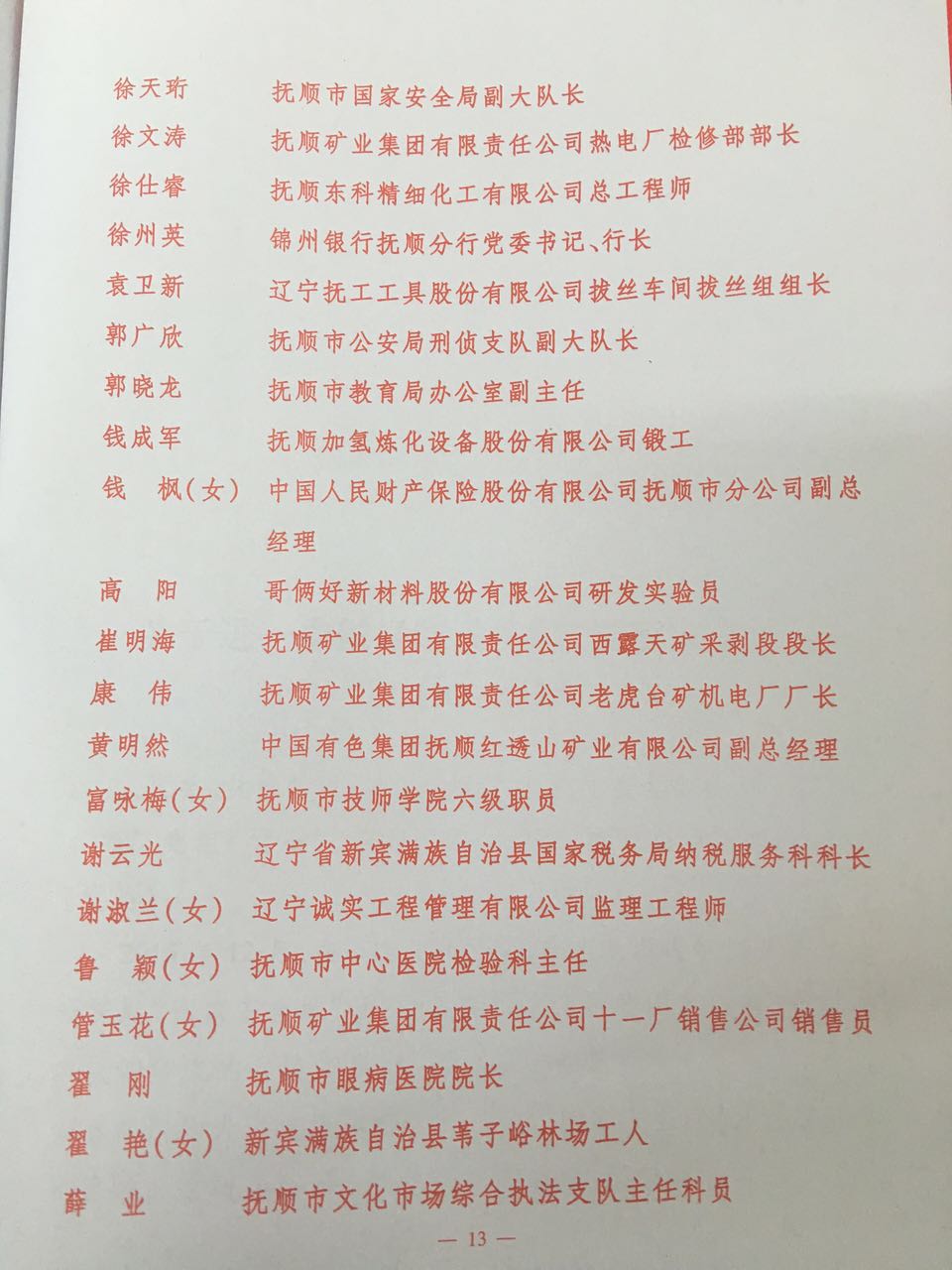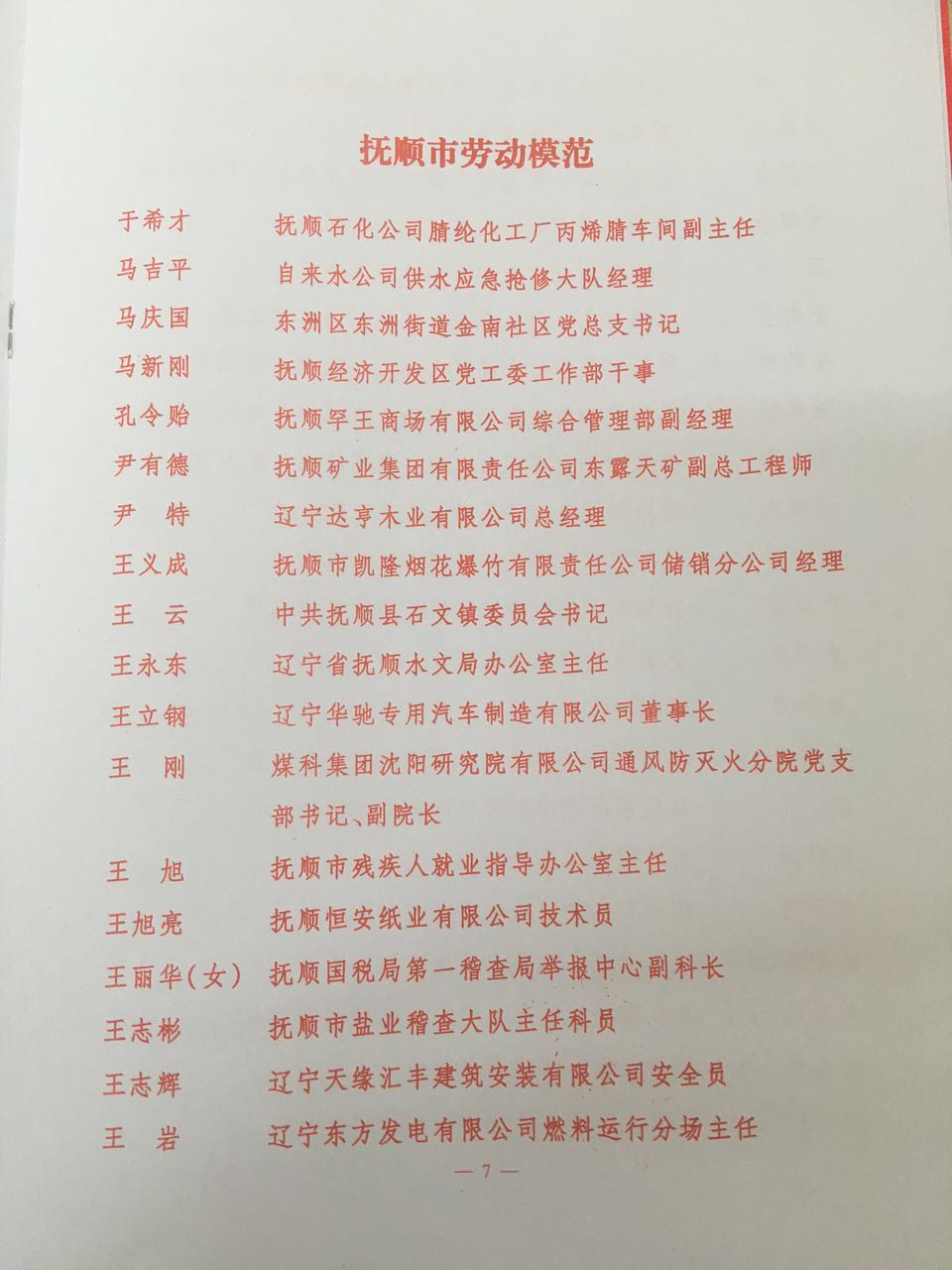 熱烈慶祝我公司謝淑蘭同志榮獲撫順市勞動(dòng)模范稱號(hào)