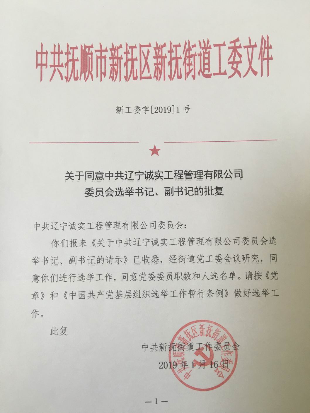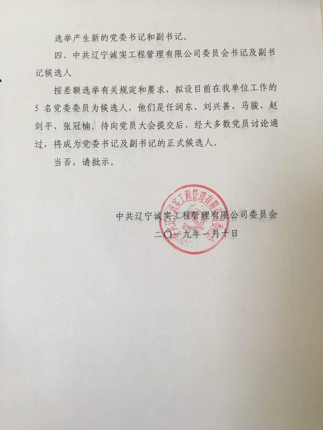 熱烈慶祝中共遼寧誠實工程管理有限公司委員會書記、副書記選舉工作圓滿完成