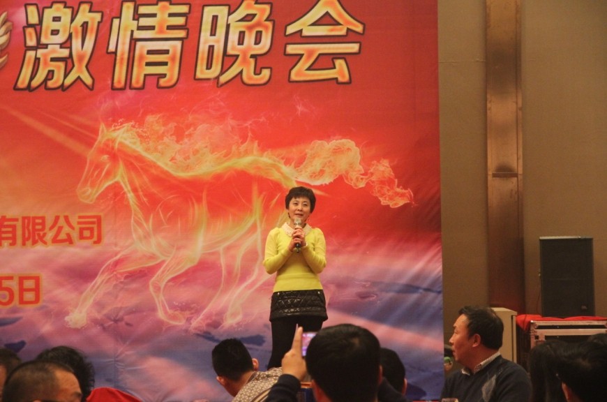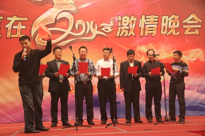 年終總結大會由副總經理祝奕主持。總經理孫學良和董事長趙劍平分別進行了發言。