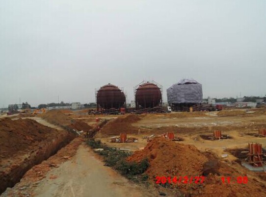 已組裝六臺(tái)球罐,焊接完成兩臺(tái)